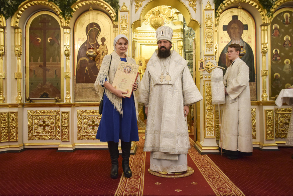 По окончании богослужения епископ Агафангел огласил своё рождественское послание и вручил церковные награды.